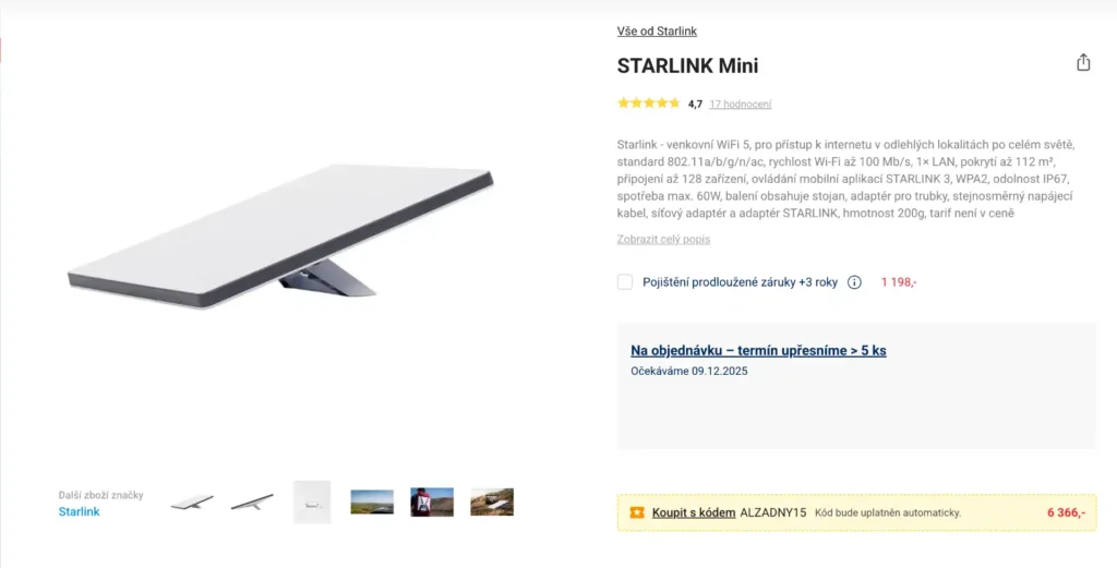 a menší, přenosnější Starlink Mini jen za 6 366 Kč.