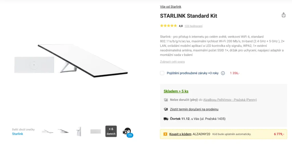 Starlink Standard pořídíte za 6 779 Kč