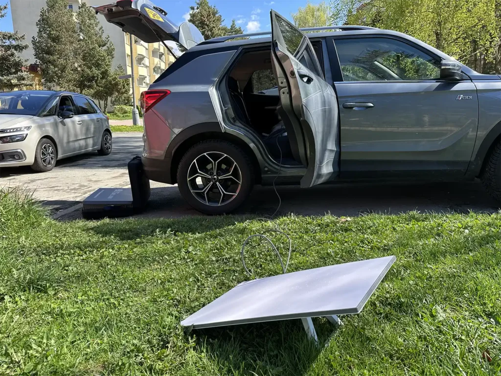 V rámci testu jsme zapojili Starlink Standard Kit do zadní 220V zásuvky vozu SsangYong (KGM) Korando. Systém se nejprve normálně spustil, parabola začala hledat satelity a router vytvořil Wi-Fi síť. Po několika minutách se však zařízení samo vypnulo a internet starlink přestal fungovat.